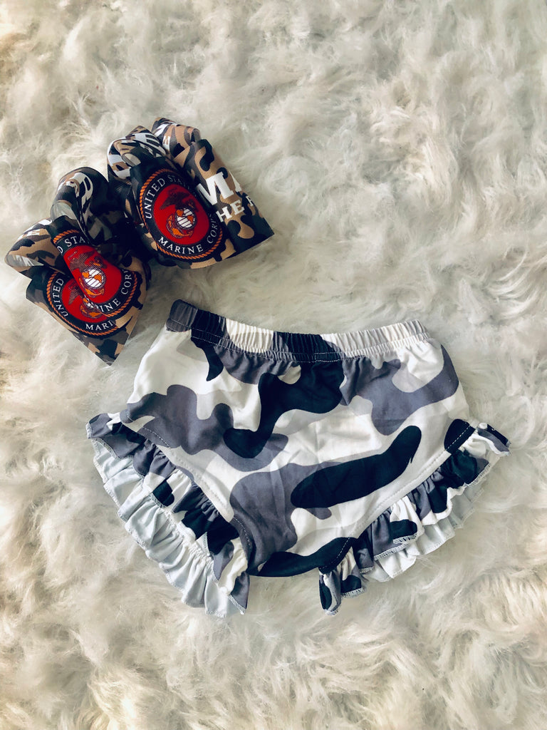 These GREY camo bummies are perfect for your military babe, hunting babe, or just your fashionista babe!
